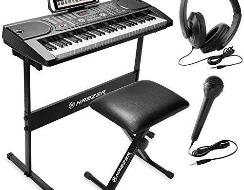 Buy Hamzer 61-Key Portable Electronic Keyboard Piano with Stand, Stool, Headphones, Microphone & Sticker Sheet: Portable & Arranger Keyboards – ✓ FREE DELIVERY possible on eligible purchases