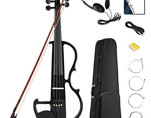 Read More...Vangoa Electric Violin Full Size 4/4, Black Silent Electric Violin, Solid Wood Metallic Electric Fiddle with Ebony Fittings, Beginner Kit for Adults Teens