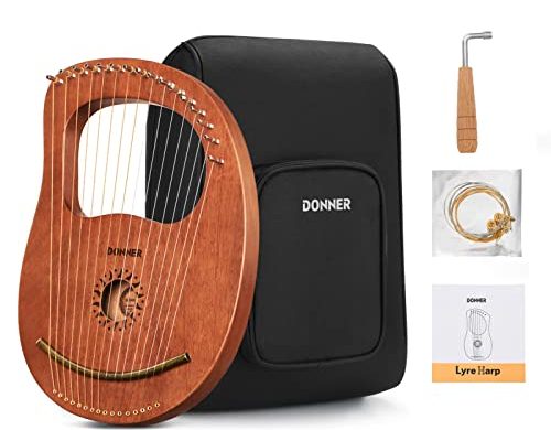 Read More...Donner DLH-003 Lyre Harp, 16 Metal Strings Copper Saddle Mahogany Lyre Harp with Tunning Wrench, Extract Strings, Manual and Gig Bag
