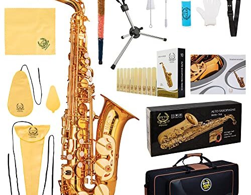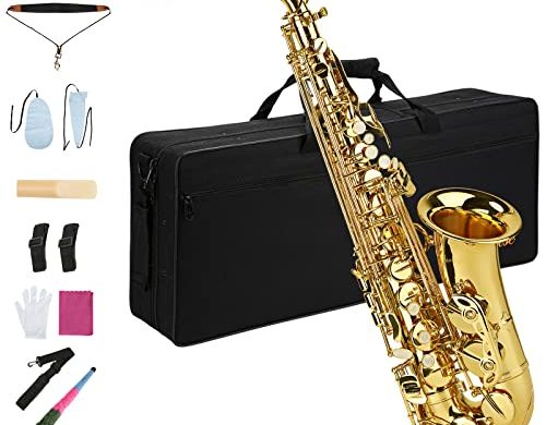 Read More...LyxJam Alto Saxophone E Flat Brass Sax Kit, Professional Sound, Complete Accessories, Ideal for All Players, Includes Hard Case, 10 Extra Reeds, Strap, Gloves, Cleaning Kit & More, Gold Lacquer Finish